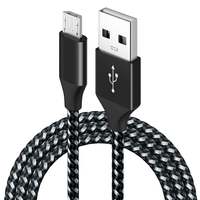 3ft 6ft Nylon dệt đen USB 2.0 Micro USB sạc cáp 2A sạc nhanh PVC cho đồng hồ thông minh Hợp kim nhôm kim loại bện